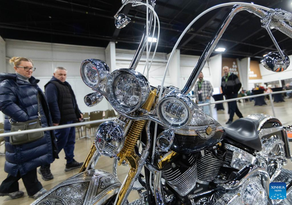 People visit the 2025 North American International Motorcycle Supershow in Mississauga, Ontario, Canada, on Jan. 3, 2025. Featuring hundreds of motorcycles, the annual three-day event kicked off here on Friday. (Photo by Zou Zheng/Xinhua)