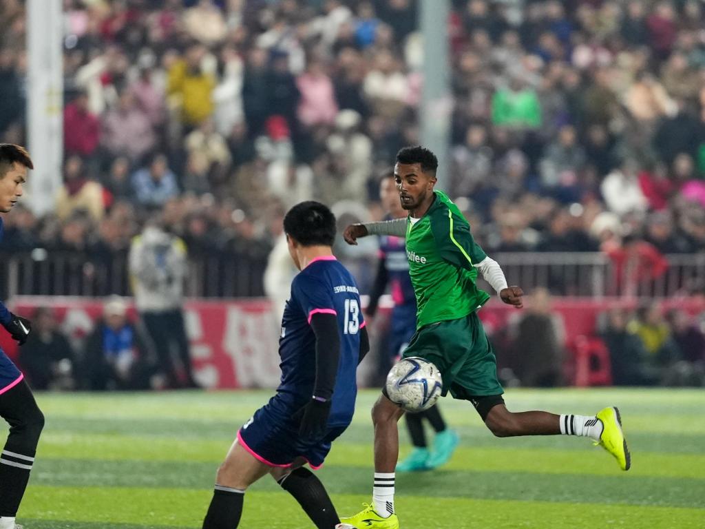 A football invitational event between a team of young football lovers from Ethiopia and their Chinese counterparts kicked off on December 31, 2024, in Rongjiang County, southwest China's Guizhou province.