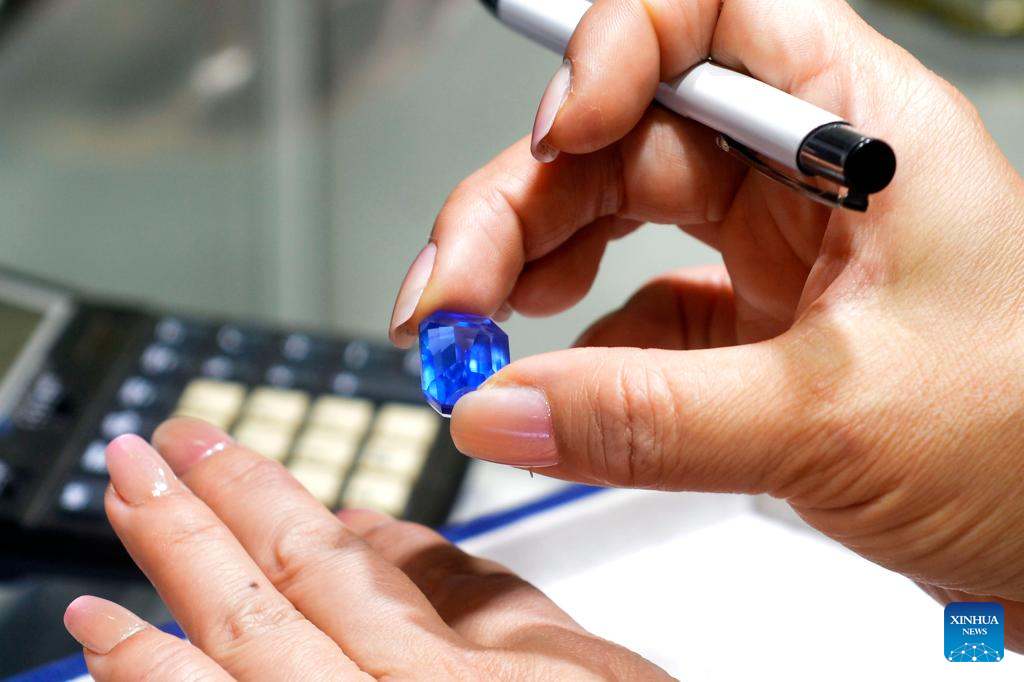 This photo shows a gemstone on display during FACETS Sri Lanka 2025, an international gem and jewellery exhibition, in Colombo, Sri Lanka, Jan. 4, 2025. The exhibition opened here Saturday. (Photo by Gayan Sameera/Xinhua)