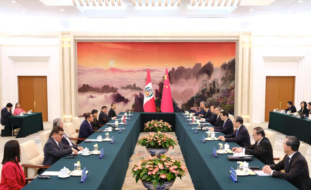 Wang, chairman of the Chinese People's Political Consultative Conference (CPPCC) National Committee, said China is willing to make joint efforts with Peru to push for more achievements in China-Peru relations and bring more benefits to the two peoples, and the CPPCC is ready to strengthen exchanges and cooperation with Peru to make contributions to promoting the joint advance of the two countries on the road of national modernization.