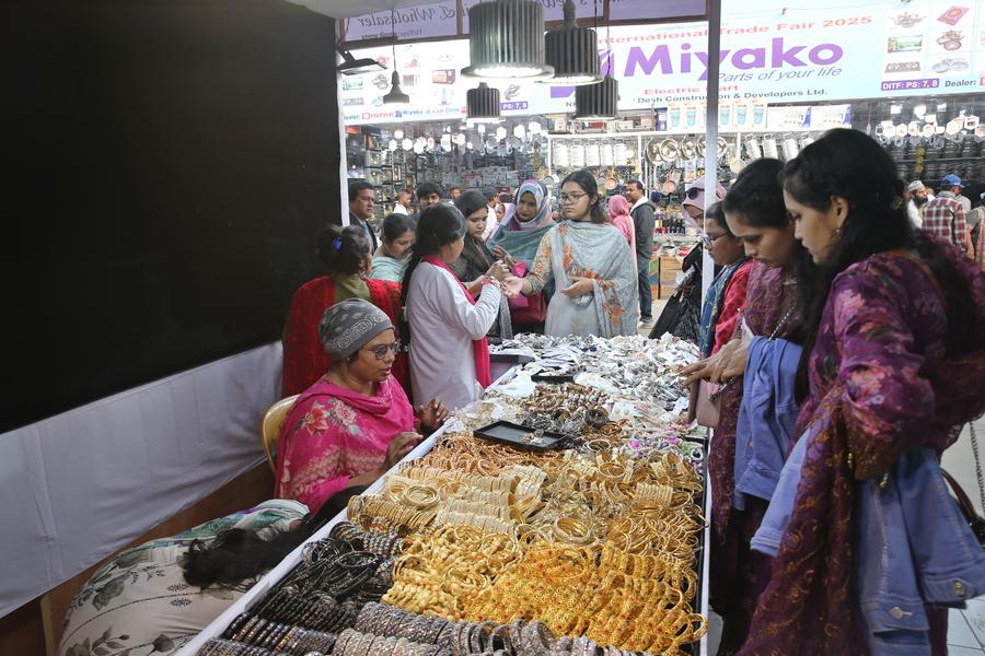 People choose and buy products during the 29th Dhaka International Trade Fair in Dhaka, Bangladesh, Jan. 4, 2025. (Photo by Habibur Rahman/Xinhua)A stall owner shows his products during the 29th Dhaka International Trade Fair in Dhaka, Bangladesh, Jan. 4, 2025. (Photo by Habibur Rahman/Xinhua)People choose and buy products during the 29th Dhaka International Trade Fair in Dhaka, Bangladesh, Jan. 4, 2025. (Photo by Habibur Rahman/Xinhua)People choose and buy products during the 29th Dhaka International Trade Fair in Dhaka, Bangladesh, Jan. 4, 2025. (Photo by Habibur Rahman/Xinhua)People choose toys during the 29th Dhaka International Trade Fair in Dhaka, Bangladesh, Jan. 4, 2025. (Photo by Habibur Rahman/Xinhua)People choose and buy products during the 29th Dhaka International Trade Fair in Dhaka, Bangladesh, Jan. 4, 2025. (Photo by Habibur Rahman/Xinhua)People choose and buy products during the 29th Dhaka International Trade Fair in Dhaka, Bangladesh, Jan. 4, 2025. (Photo by Habibur Rahman/Xinhua)■