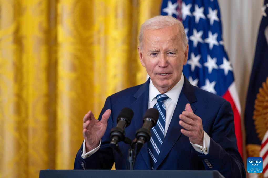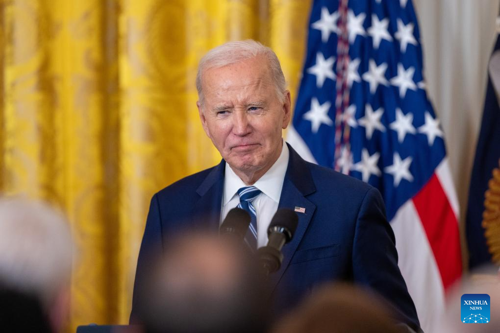 U.S. President Joe Biden speaks at the White House in Washington, D.C., the United States, on Jan. 5, 2025. Japan's Nippon Steel and United States Steel have jointly filed a lawsuit against the U.S. government over President Joe Biden's decision to block the buyout of the American steelmaker by the Japanese company, local media reported Monday. (Xinhua/Hu Yousong)
