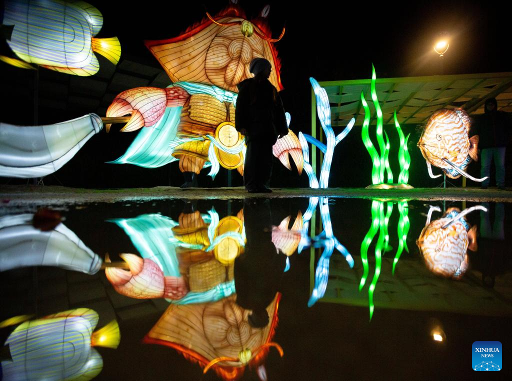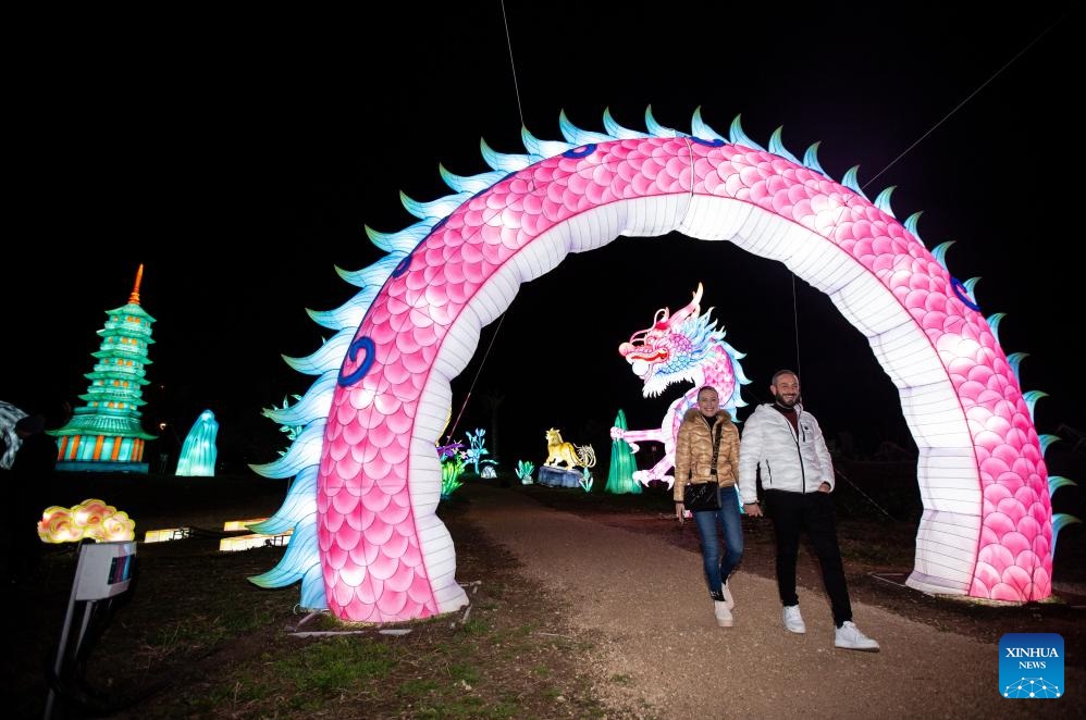 People visit a Chinese lantern exhibition at a park in Rome, Italy, Jan. 6, 2025. (Xinhua/Li Jing)