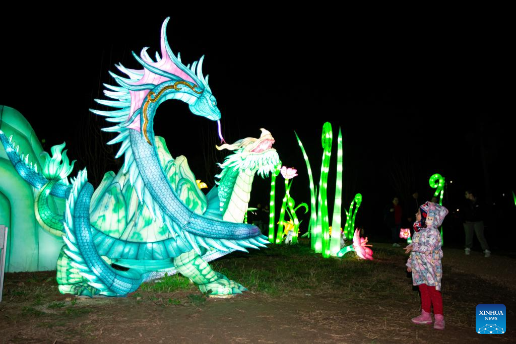 A girl visits a Chinese lantern exhibition at a park in Rome, Italy, Jan. 6, 2025. (Xinhua/Li Jing)