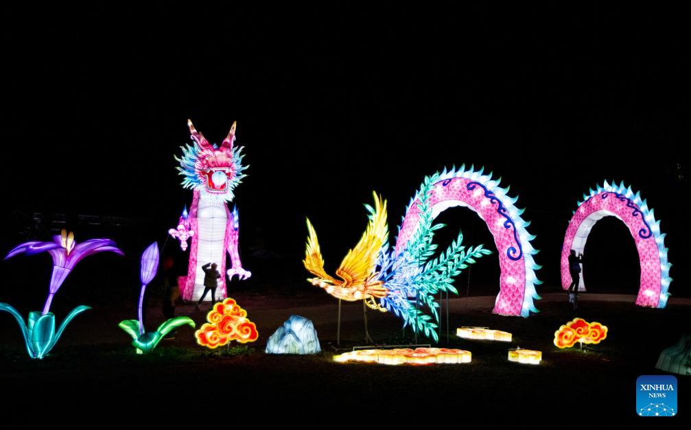 Light installations are seen during a Chinese lantern exhibition at a park in Rome, Italy, Jan. 6, 2025. (Xinhua/Li Jing)