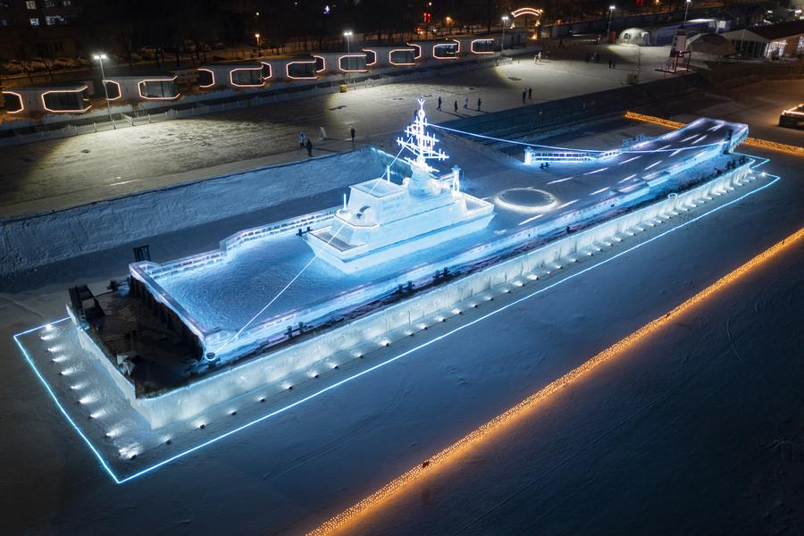 Tourists view an ice sculpture inspired by the Chinese aircraft carrier Liaoning on display in Daowai District of Harbin City, northeast China's Heilongjiang Province, Jan. 7, 2025. (Xinhua/Xie Jianfei)An aerial drone photo shows tourists viewing an ice sculpture inspired by the Chinese aircraft carrier Liaoning on display in Daowai District of Harbin City, northeast China's Heilongjiang Province, Jan. 7, 2025. (Xinhua/Xie Jianfei)A tourist poses for photos with an ice sculpture inspired by the Chinese aircraft carrier Liaoning on display in Daowai District of Harbin City, northeast China's Heilongjiang Province, Jan. 7, 2025. (Xinhua/Xie Jianfei)A drone photo shows tourists viewing an ice sculpture inspired by the Chinese aircraft carrier Liaoning on display in Daowai District of Harbin City, northeast China's Heilongjiang Province, Jan. 7, 2025. (Xinhua/Xie Jianfei)Tourists view an ice sculpture inspired by the Chinese aircraft carrier Liaoning on display in Daowai District of Harbin City, northeast China's Heilongjiang Province, Jan. 7, 2025. (Xinhua/Xie Jianfei)This photo shows an ice sculpture inspired by the Chinese aircraft carrier Liaoning on display in Daowai District of Harbin City, northeast China's Heilongjiang Province, Jan. 7, 2025. (Xinhua/Xie Jianfei)A drone photo shows an ice sculpture inspired by the Chinese aircraft carrier Liaoning on display in Daowai District of Harbin City, northeast China's Heilongjiang Province, Jan. 7, 2025. (Xinhua/Xie Jianfei)■
