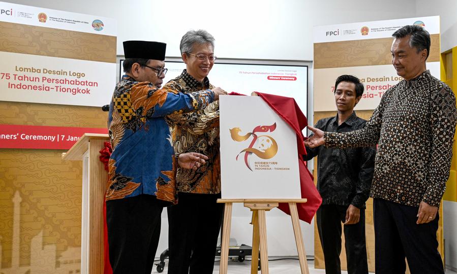 JAKARTA, Jan. 8 (Xinhua) -- Diplomats from Indonesia and China unveiled a logo on Tuesday to commemorate the 75th anniversary of the establishment of diplomatic relations between the two nations.