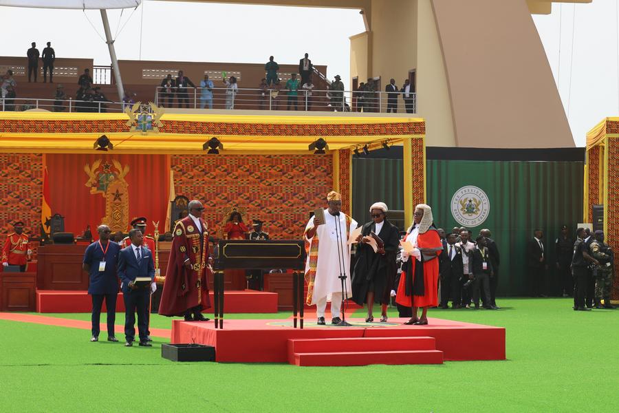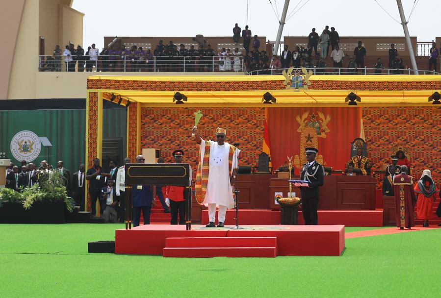ACCRA, Jan. 8 (Xinhua) -- Ghanaian President John Dramani Mahama took the oath of office Tuesday after winning the presidential election in December last year.
