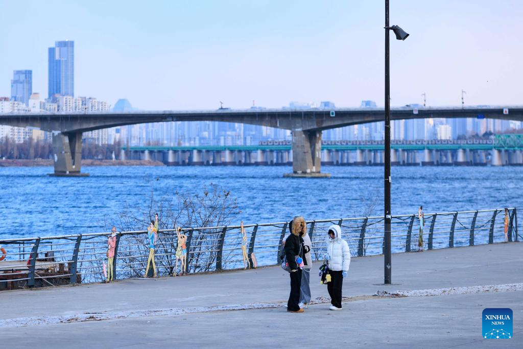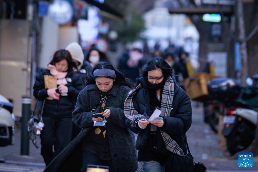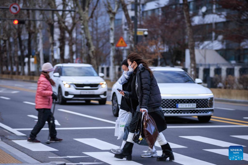 People walk on a street in Seoul, South Korea, Jan. 9, 2025. South Korea witnessed a sharp drop in temperature, with the lowest temperature in Seoul reaching minus 17 degrees Celsius. (Photo by Park Jintaek/Xinhua)