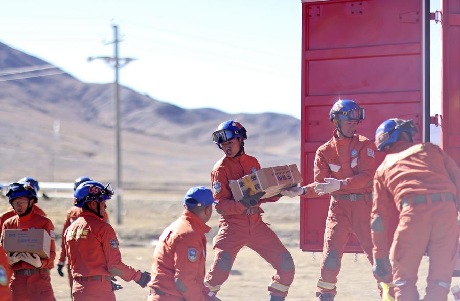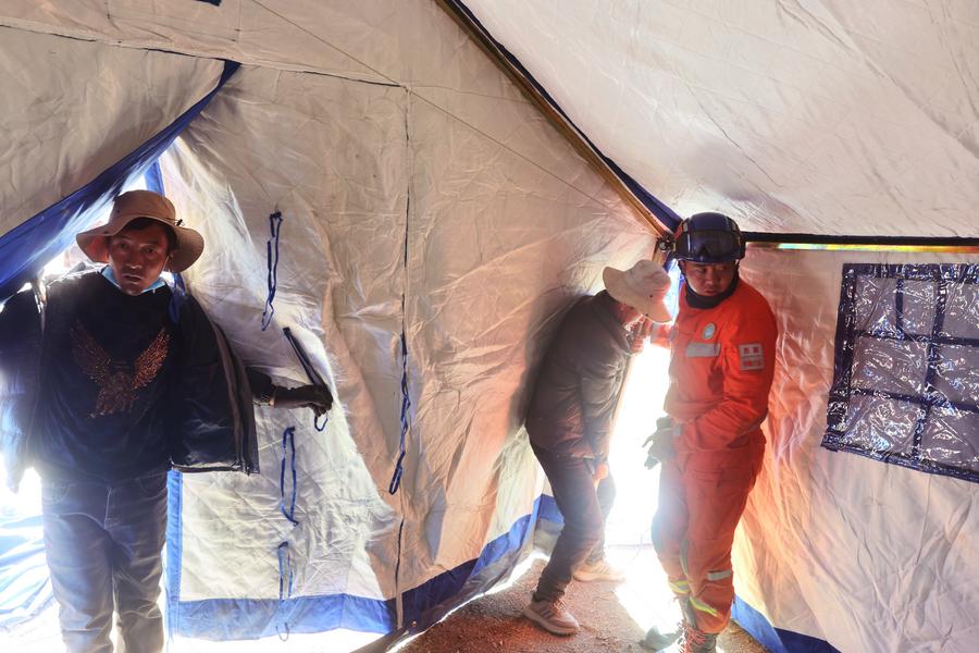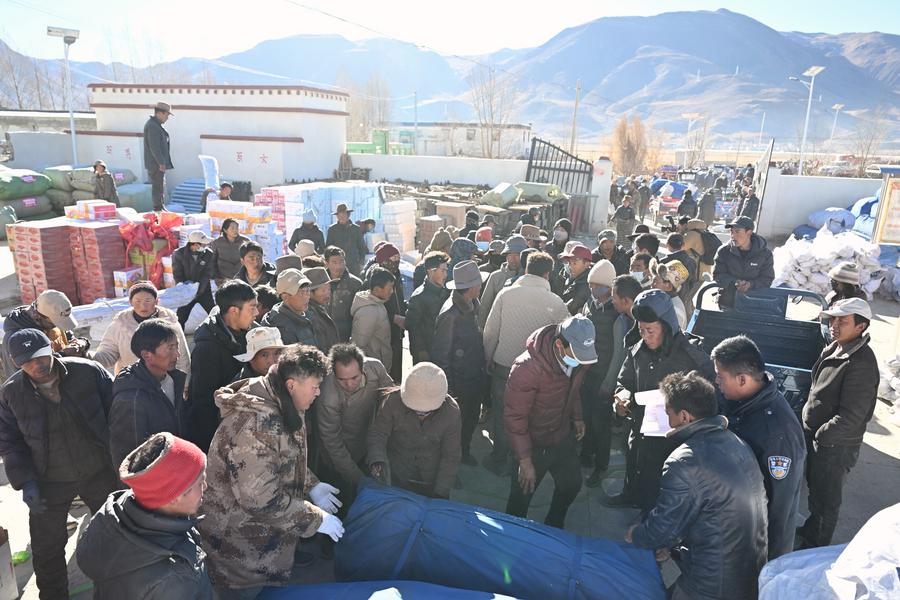 Rescuers unload disaster relief materials in Cuobu Village of Lnaze County, Xigaze, southwest China's Xizang Autonomous Region, Jan. 9, 2025. (Xinhua/Jiang Fan)People unload disaster relief materials in Cuobu Village of Lnaze County, Xigaze, southwest China's Xizang Autonomous Region, Jan. 9, 2025. (Xinhua/Li Xiang)People receive disaster relief materials in Cuobu Village of Lnaze County, Xigaze, southwest China's Xizang Autonomous Region, Jan. 9, 2025. (Xinhua/Jiang Fan)People unload disaster relief materials in Cuobu Village of Lnaze County, Xigaze, southwest China's Xizang Autonomous Region, Jan. 9, 2025. (Xinhua/Li Xiang)People unload disaster relief materials in Cuobu Village of Lnaze County, Xigaze, southwest China's Xizang Autonomous Region, Jan. 9, 2025. (Xinhua/Li Xiang)People receive disaster relief materials in Cuobu Village of Lnaze County, Xigaze, southwest China's Xizang Autonomous Region, Jan. 9, 2025. (Xinhua/Li Xiang)People set up a tent in Cuobu Village of Lnaze County, Xigaze, southwest China's Xizang Autonomous Region, Jan. 9, 2025. (Xinhua/Jiang Fan)A rescuer helps local people set up a tent in Cuobu Village of Lnaze County, Xigaze, southwest China's Xizang Autonomous Region, Jan. 9, 2025. (Xinhua/Jiang Fan)■