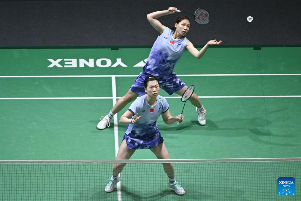 Hsieh Pei Shan/Hung En-Tzu (front) of Chinese Taipei compete during the women's doubles quarterfinal between Liu Shengshu/Tan Ning of China and Hsieh Pei Shan/Hung En-Tzu of Chinese Taipei at the Malaysia Open 2025 badminton tournament in Kuala Lumpur, Malaysia, Jan. 10, 2025. (Xinhua/Cheng Yiheng)