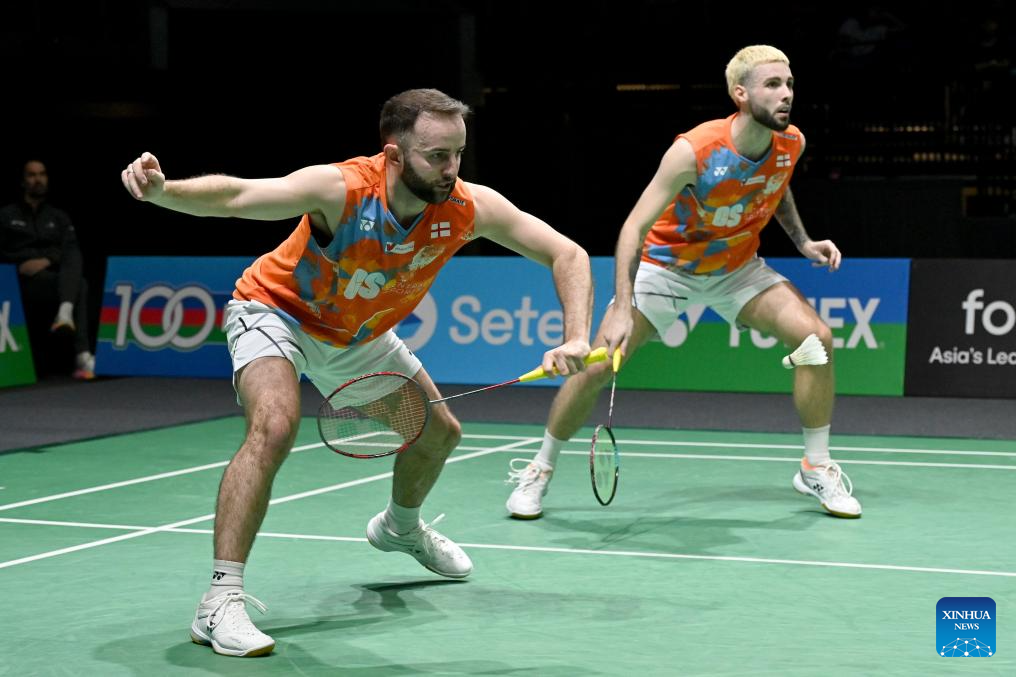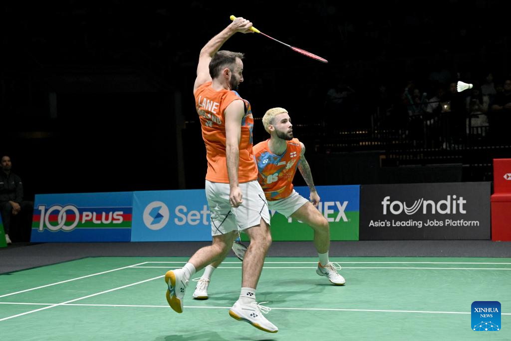 Ben Lane (L)/Sean Vendy of England compete during the men's doubles quarterfinal between Chen Boyang/Liu Yi of China and Ben Lane/Sean Vendy of England at the Malaysia Open 2025 badminton tournament in Kuala Lumpur, Malaysia, Jan. 10, 2025. (Photo by Chong Voon Chung/Xinhua)