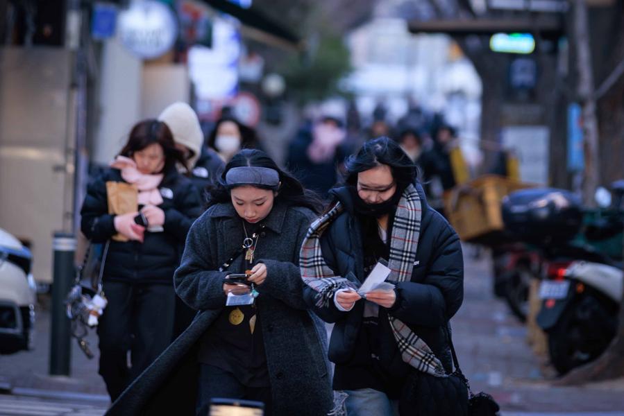 People walk on a street in Seoul, South Korea, Jan. 9, 2025. (Photo by Park Jintaek/Xinhua)