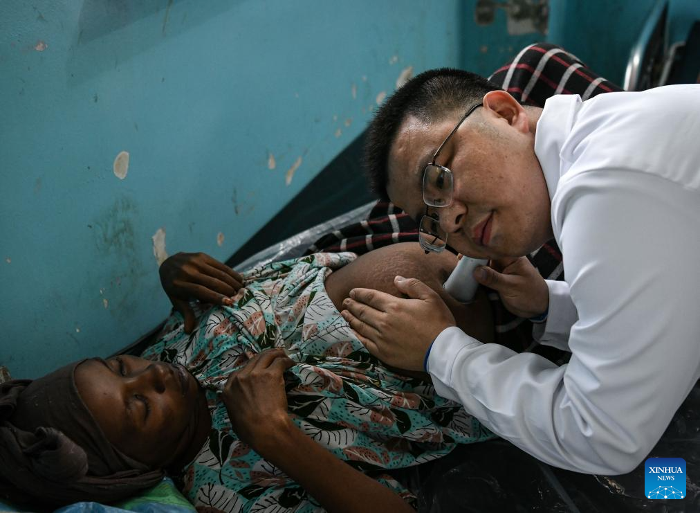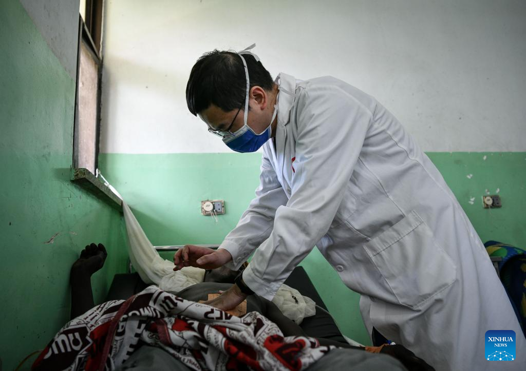 Chinese doctor Zhang Chaozhong, a member of the 20th Chinese medical team to Chad, examines a patient at the China-Chad Friendship Hospital in N'Djamena, Chad, Jan. 9, 2025.