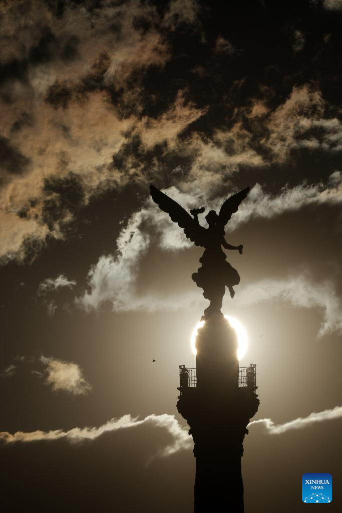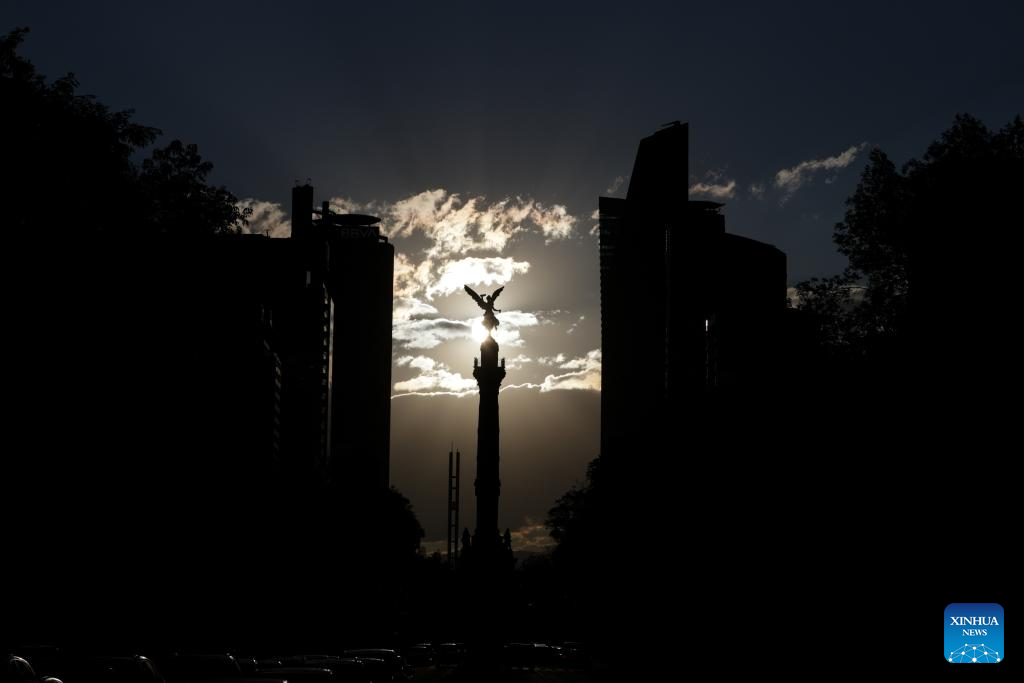 This photo taken on Jan. 9, 2025 shows the Angel of Independence at dusk in Mexico City, capital of Mexico. (Xinhua/Francisco Canedo)