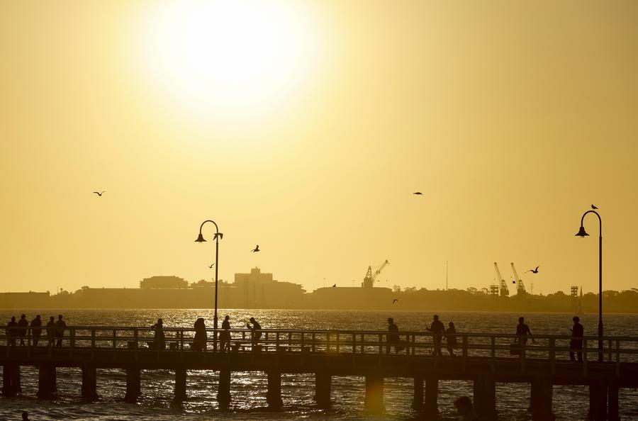 People enjoy sunset scenery at the Port Melbourne Beach in Melbourne, Australia, Jan. 10, 2025. (Xinhua/Ma Ping)A man goes fishing during sunset on the Kerferd Road Pier at the Port Melbourne Beach in Melbourne, Australia, Jan. 10, 2025. (Xinhua/Ma Ping)This photo taken on Jan. 10, 2025 from the Port Melbourne Beach shows the sunset scenery in Melbourne, Australia. (Xinhua/Ma Ping)People enjoy sunset scenery on the Kerferd Road Pier at the Port Melbourne Beach in Melbourne, Australia, Jan. 10, 2025. (Xinhua/Ma Ping)This photo taken on Jan. 10, 2025 from the Port Melbourne Beach shows the skyline of Melbourne CBD during sunset in Melbourne, Australia. (Xinhua/Ma Ping)People have fun during sunset at the Port Melbourne Beach in Melbourne, Australia, Jan. 10, 2025. (Xinhua/Ma Ping)■