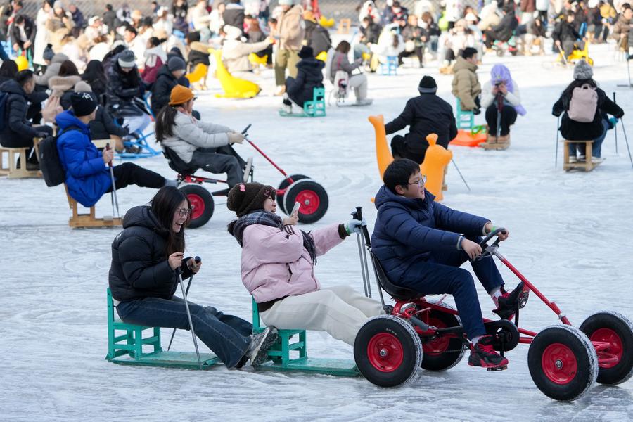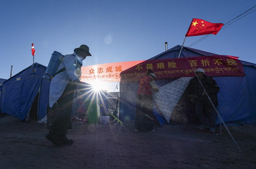 A villager carries out disinfection at a temporary resettlement site in Naicun Village, Dinggye County of Xigaze, southwest China's Xizang Autonomous Region, Jan. 10, 2025. (Xinhua/Tenzin Nyida)An aerial drone photo shows a view of the Dahei River country park in Hohhot City, north China's Inner Mongolia Autonomous Region, Jan. 11, 2025. Once polluted by improper economic activities in the area, the Dahei River basin has now become an ideal habitat for migrant birds and also heaven for bird lovers, thanks to the ecological restoration measures taken in recent years. (Xinhua/Lian Zhen)An aerial drone photo shows the construction site of the Sanya River estuary passage project in Sanya, south China's Hainan Province, Jan. 11, 2025. As the first underwater tunnel in Sanya, the project undertaken by China Railway 20th Bureau Group is making steady progress. It will further optimize the spatial layout of Sanya City once completed. (Xinhua/Yang Guanyu)An actress performs on train K7041 from Harbin to Mohe, northeast China's Heilongjiang Province, Jan. 11, 2025. On train K7041 from Harbin to Mohe, five inheritors of intangible cultural heritages of the Oroqen ethnic group showcased various traditional crafts to passengers. This train marks the first of its kind operated by China Railway Harbin Group Co., Ltd. As winter tourism in Heilongjiang continues to thrive, the train themed with local intangible cultural heritages started operation, inviting inheritors to demonstrate traditional ethnic skills on-site and promote ethnic culture. (Xinhua/Wang Song)People enjoy themselves on the ice rink at Tuanjiehu Park in Beijing, capital of China, Jan. 11, 2025. Many ice rinks in Beijing's parks have opened recently, attracting lots of visitors. (Xinhua/Ju Huanzong)People watch performance during the Gardens Magic concert at Wellington Botanic Garden in Wellington, New Zealand, Jan. 10, 2025. (Photo by Meng Tao/Xinhua)A firefighter works in the wildfire-ravaged area of Altadena, Los Angeles County, California, the United States, on Jan. 10, 2025. Devastating wildfires continue to rage across different parts of Los Angeles County on Friday, leading to widespread disruptions, including school closures and the cancellation of entertainment, sports, and community events. As of Friday, the wildfires have destroyed more than 12,300 structures and claimed at least 11 lives, with officials warning the true death toll will remain unclear until it is safe for investigators to go into neighborhoods. More than 100,000 people are under evacuation orders, with tens of thousands more under warnings. (Photo by Qiu Chen/Xinhua)Two spotted seals are pictured in the waters of Vladivostok, Russia, Jan. 11, 2025. (Photo by Guo Feizhou/Xinhua)Shi Yuqi hits a return during the men's singles semifinal match between Shi Yuqi of China and Li Shifeng of China at the Malaysia Open 2025 badminton tournament in Kuala Lumpur, Malaysia, Jan. 11, 2025. (Photo by Chong Voon Chung/Xinhua)■