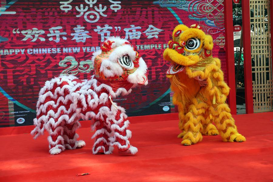 During the event, Chinese and Bangladeshi participants enjoyed dragon and lion dances, martial arts, instrumental performances, and traditional Chinese dances, in addition to visits to Spring Festival cultural exhibition booths and New Year goods markets.