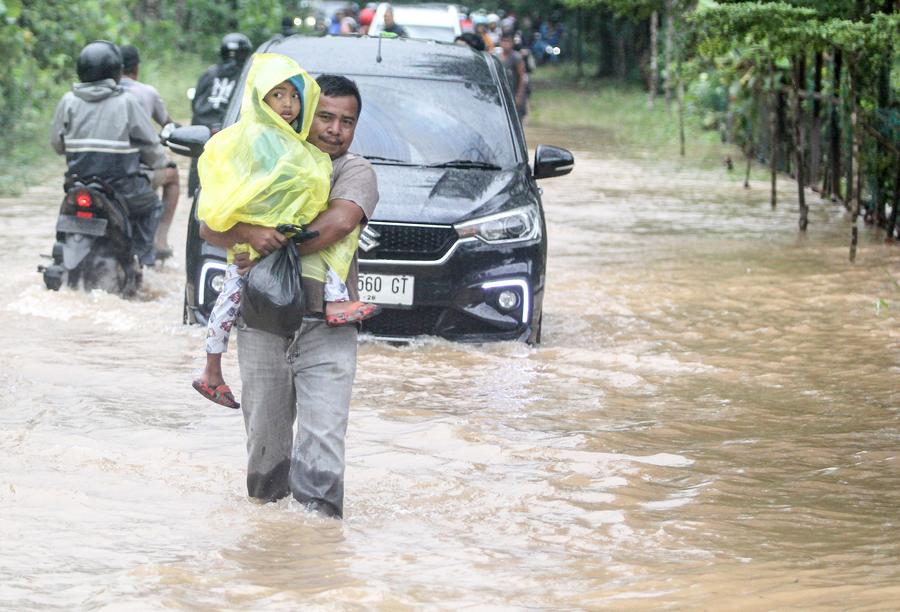 A father holding his child walks through flood water after heavy rain hit Tanjungpinang, the capital of Riau Islands province, Indonesia, Jan. 11, 2025. (Photo by Yuli Seperi/Xinhua)Motorists wade through flood water after heavy rain hit Tanjungpinang, the capital of Riau Islands province, Indonesia, Jan. 11, 2025. (Photo by Yuli Seperi/Xinhua)A motorist wades through flood water after heavy rain hit Tanjungpinang, the capital of Riau Islands province, Indonesia, Jan. 11, 2025. (Photo by Yuli Seperi/Xinhua)■