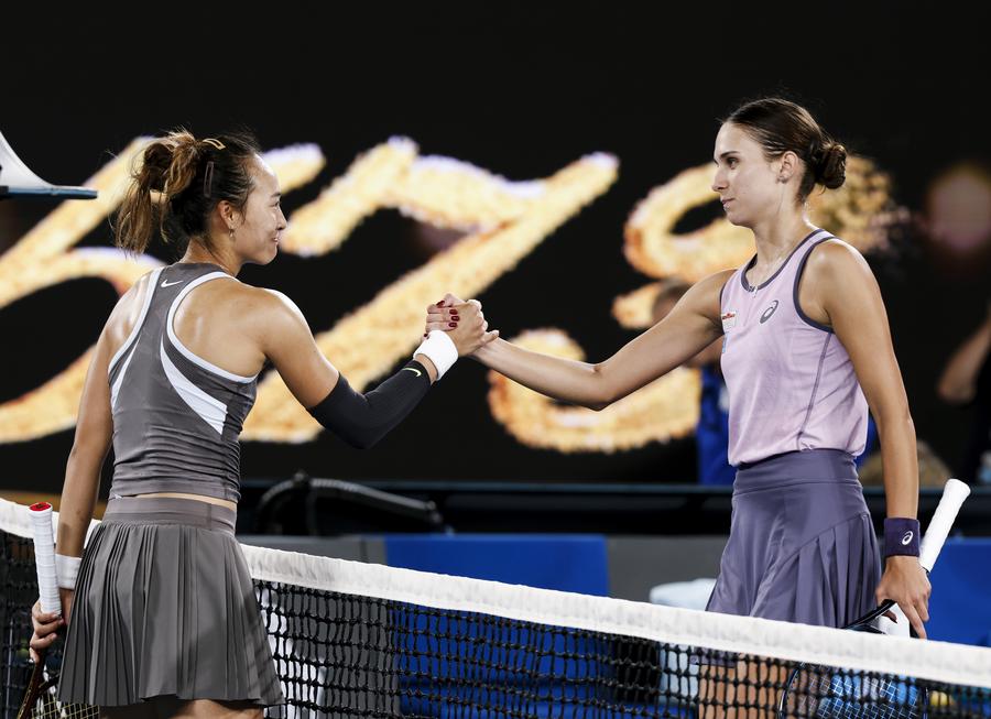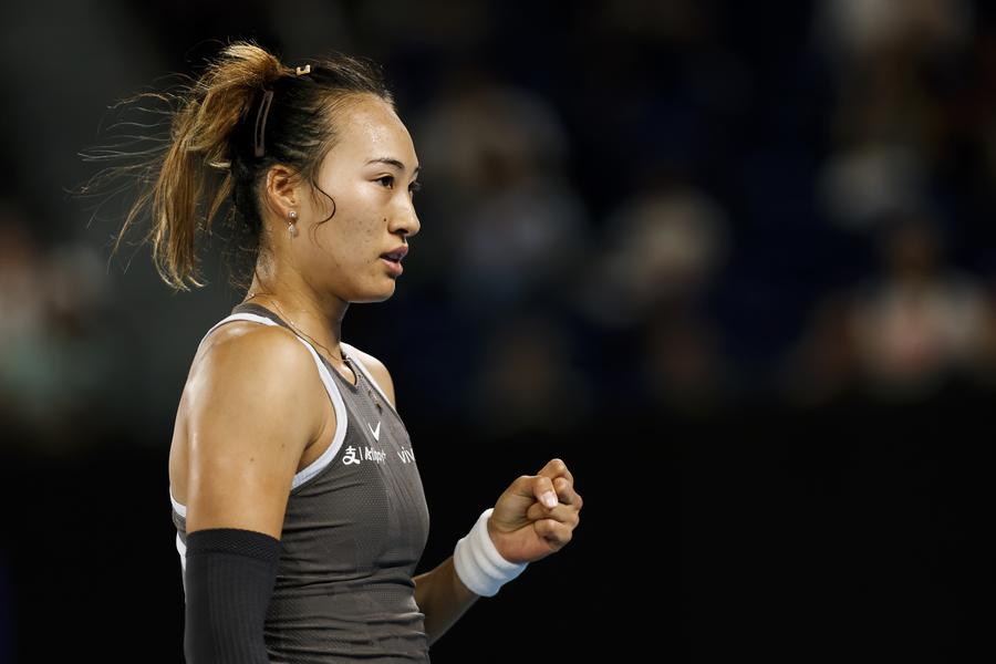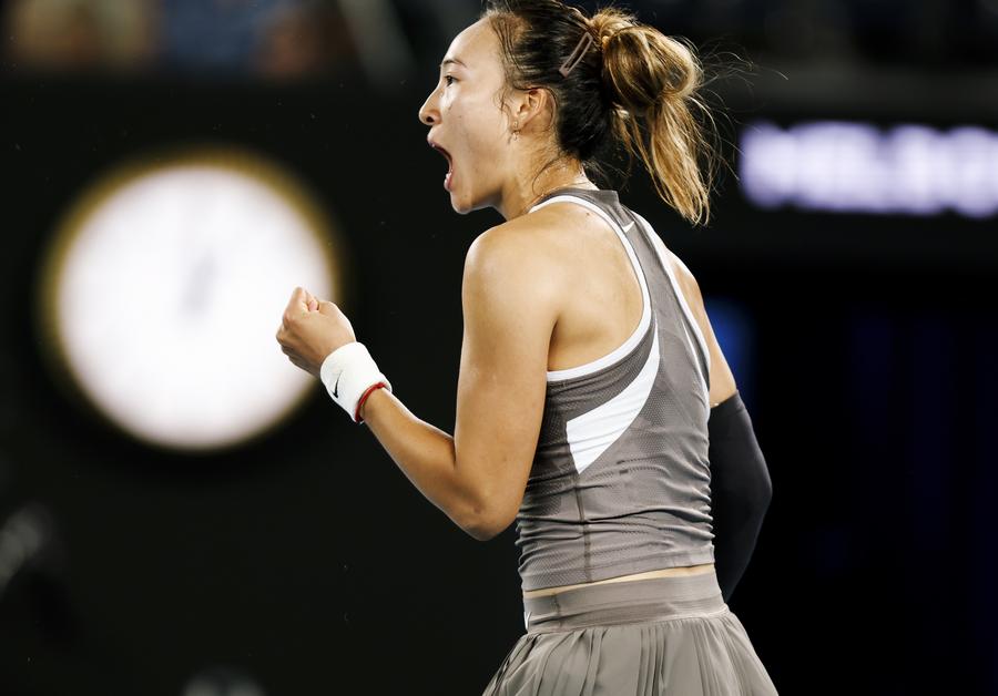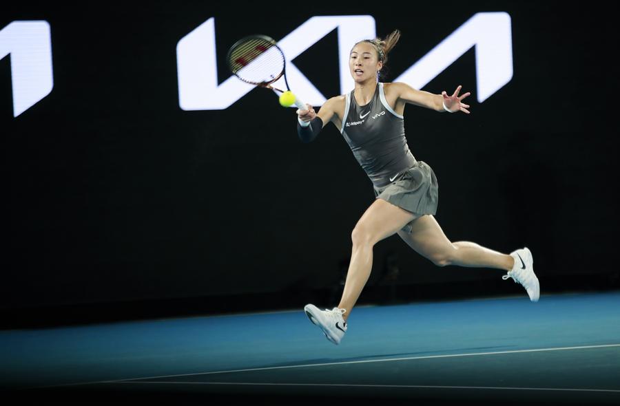 MELBOURNE, Jan. 12 (Xinhua) -- Chinese tennis star Zheng Qinwen had a scratchy start on Sunday after a prolonged break from tennis before overpowering gritty Romanian qualifier Anca Todoni in straight sets on day one of the Australian Open.