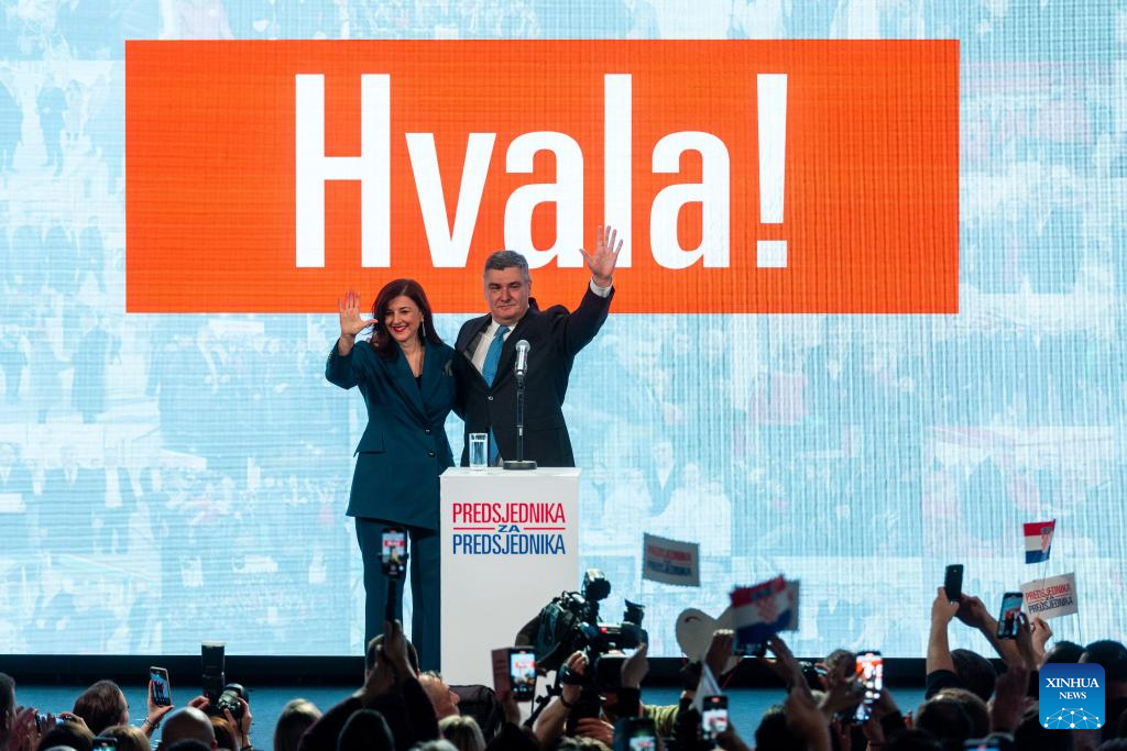 ZAGREB, Jan. 12 (Xinhua) -- Incumbent Croatian President Zoran Milanovic convincingly won the presidential runoff held on Sunday, beating his rival Dragan Primorac with a commanding lead, according to the Croatian State Election Commission (SEC).