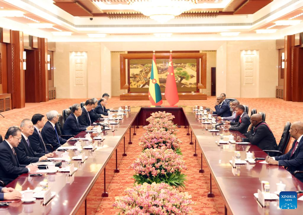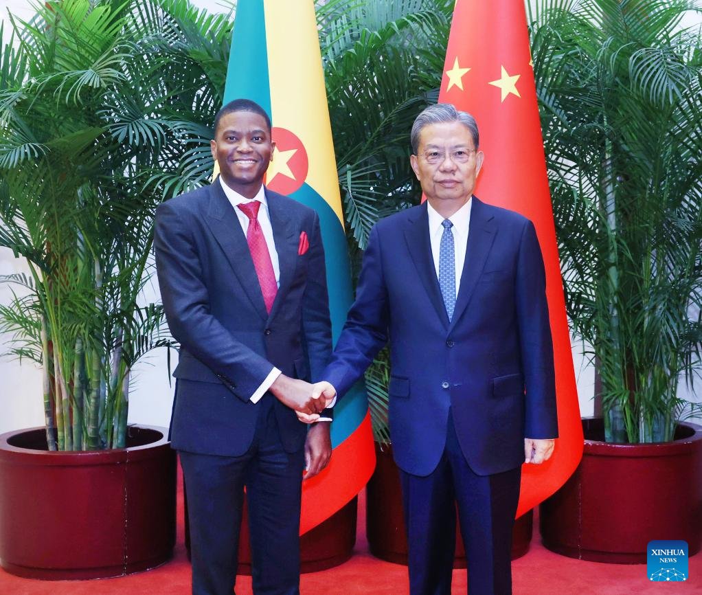 BEIJING, Jan. 13 (Xinhua) -- Zhao Leji, chairman of China's National People's Congress (NPC) Standing Committee, met with Prime Minister of Grenada Dickon Mitchell on Monday in Beijing.