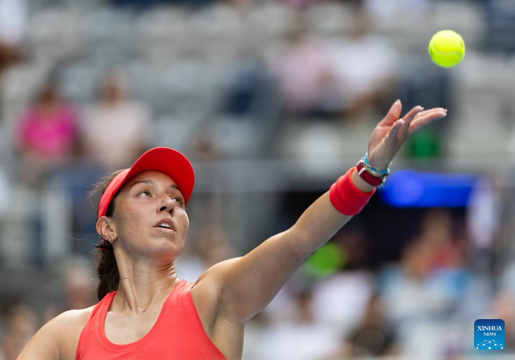 Jessica Pegula serves during the women's singles first round match between Jessica Pegula of the United States and Maya Joint of Australia at Australian Open tennis tournament in Melbourne, Australia, Jan. 13, 2025. (Photo by Hu Jingchen/Xinhua)