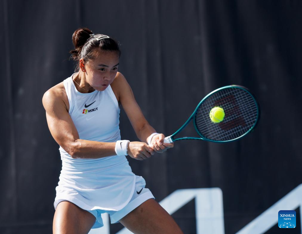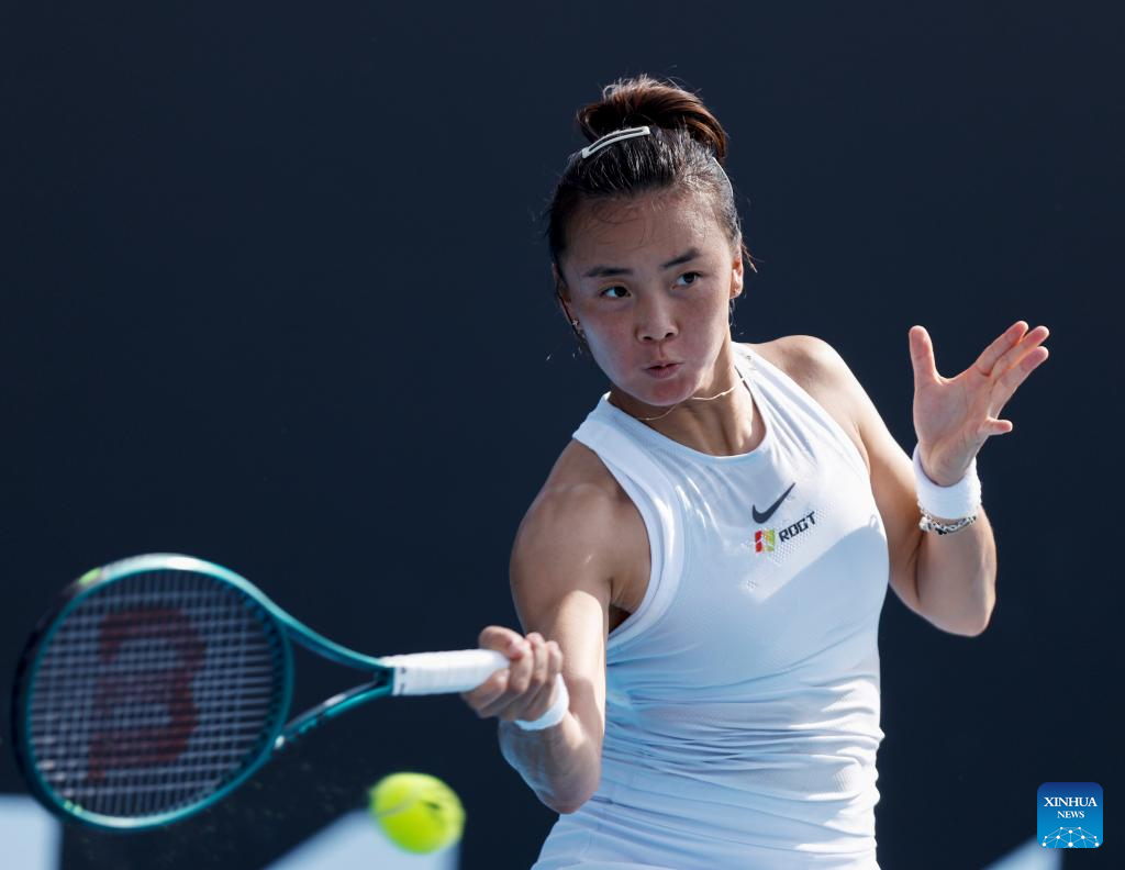 Yuan Yue hits a return during the women's singles first round match between Yuan Yue of China and Anastasia Pavlyuchenkova of Russia at Australian Open tennis tournament in Melbourne, Australia, Jan. 13, 2025. (Xinhua/Ma Ping)