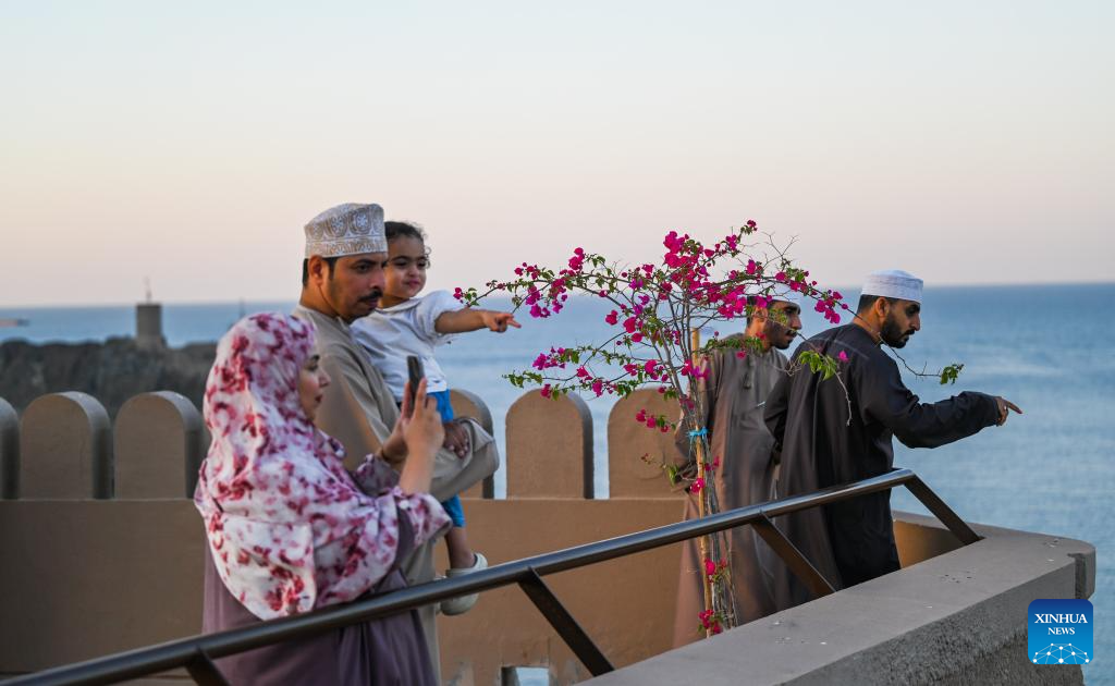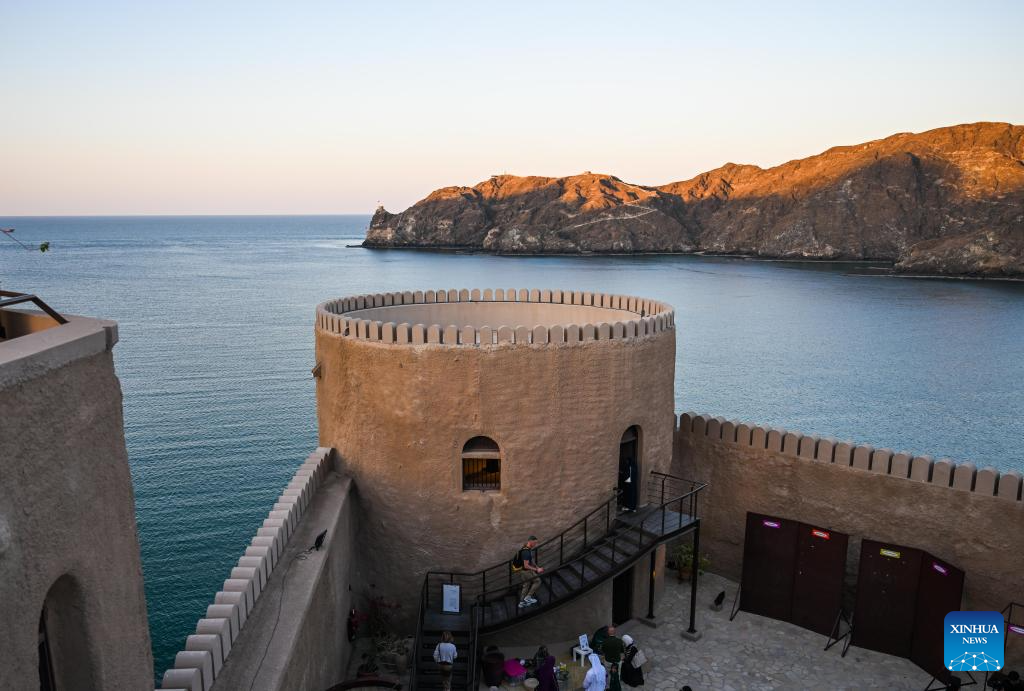 Tourists visit Al Mirani Fort in Muscat, Oman, Jan. 12, 2025. The history of Al Mirani Fort can be traced back to the 16th century. It has now become an important tourist attraction in Oman. (Xinhua/Liu Lei)