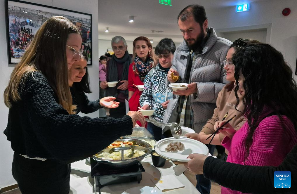 Guests enjoy traditional Chinese food during an event promoting winter tourism in China at the Chinese Cultural Centre in Bucharest, Romania, on Jan. 13, 2025. (Photo by Cristian Cristel/Xinhua)