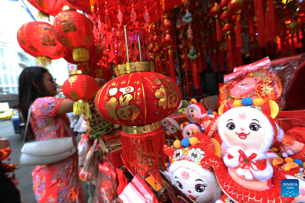 Residents buy Chinese New Year decorations at China Town in Bangkok, Thailand, Jan. 14, 2025. (Xinhua/Rachen Sageamsak)