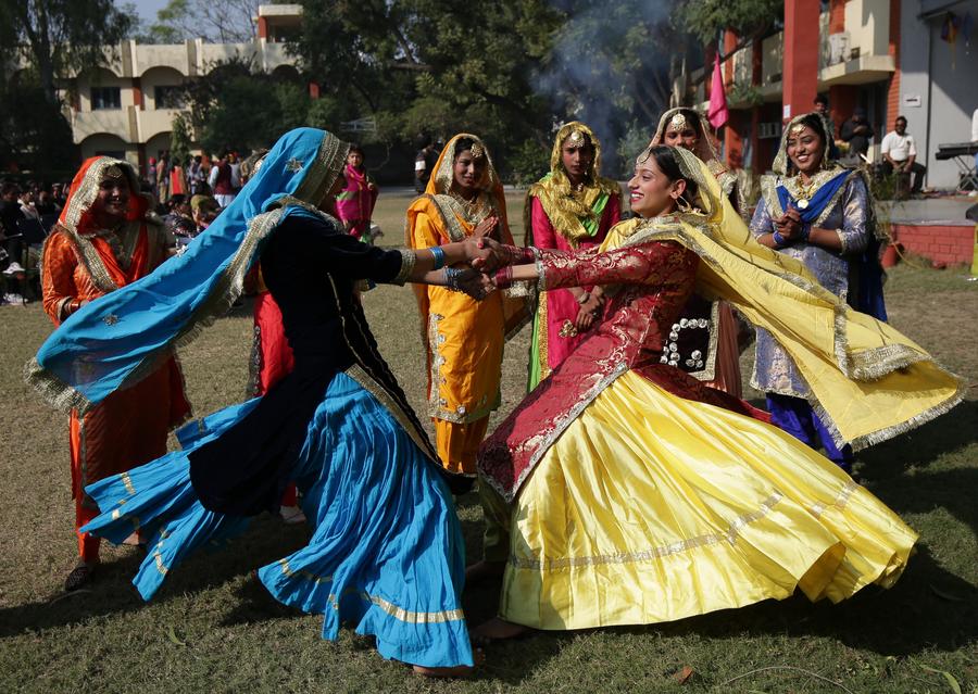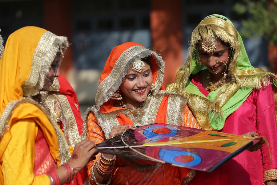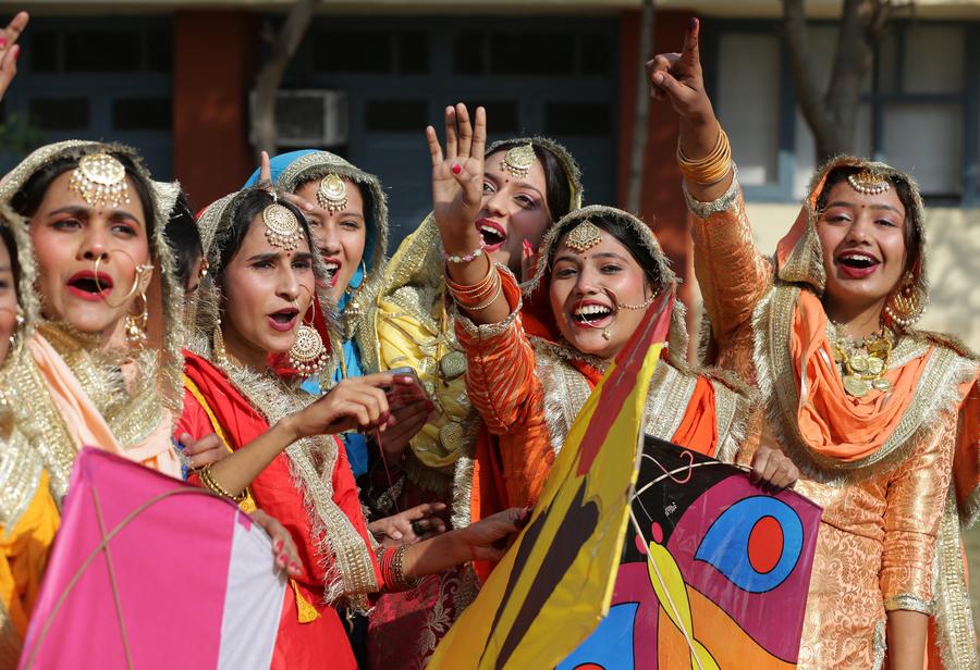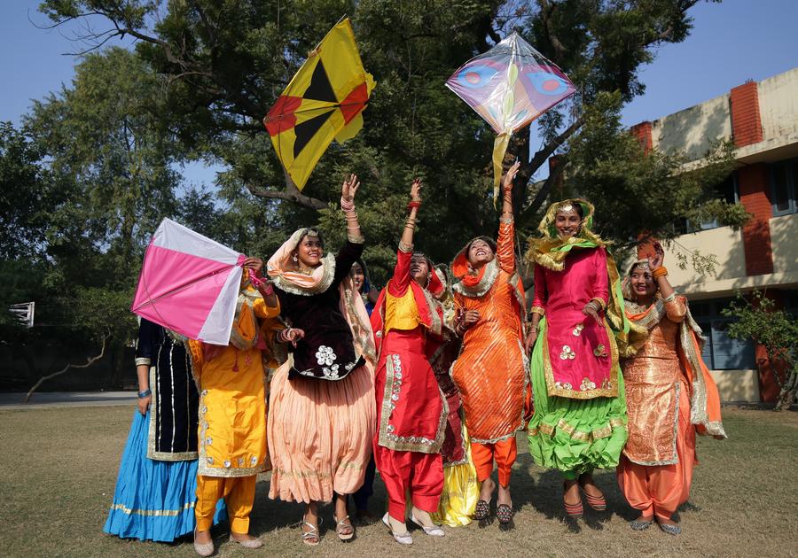 PUNJAB, India, Jan. 15 (Xinhua) -- Students in traditional attire fly kites and perform folk dances to celebrate the Lohri festival on Monday.