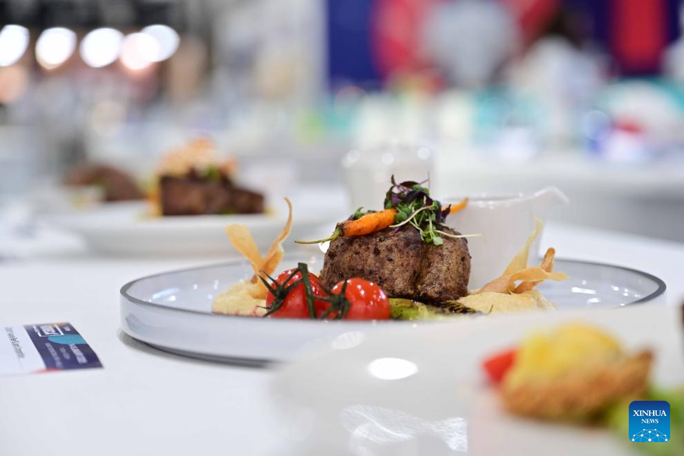 Foods are displayed during the HORECA Kuwait 2025 exhibition in Hawalli Governorate, Kuwait, Jan. 14, 2025.
