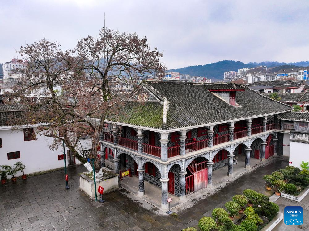 A drone photo taken on Jan. 9, 2025 shows the venue of Zunyi Meeting in Zunyi City, southwest China's Guizhou Province.