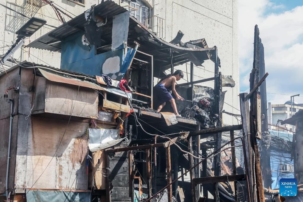People search for their belongings and other reusable materials after a fire at a slum area in Manila, the Philippines, Jan. 16, 2025. (Xinhua/Rouelle Umali)