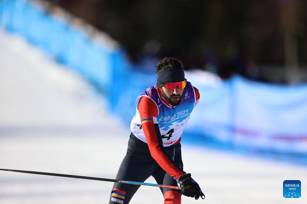 Garik Melkonyan of Armenia competes during LW class of the Men's 10km Free final of para cross country event at the Torino 2025 FISU World University Winter Games in Pragelato, Italy, Jan. 15, 2025. (Xinhua/Li Jing)