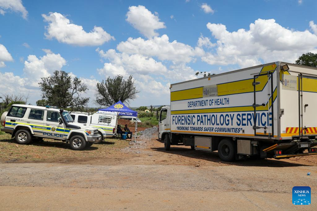 In a statement issued at 8:00 p.m. Wednesday, the South African Police Service (SAPS) said that 246 illegal miners had been retrieved alive from underground and had been arrested since the rescue operation commenced on Monday at the Stilfontein mine in the North West Province. The number of bodies recovered stood at 78, the same as the previous update released at 4:00 p.m. (Xinhua/Zhang Yudong)
