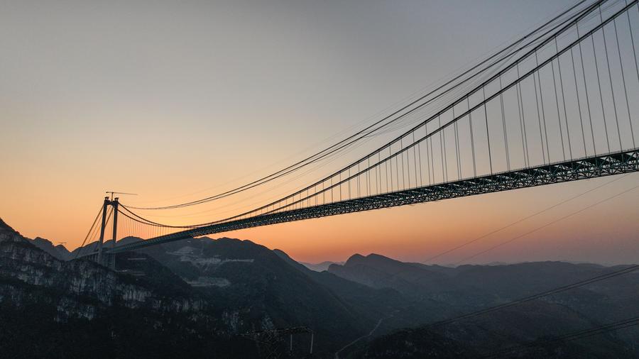 A project of Guizhou Transportation Investment Group Co., Ltd., the suspension bridge has a vertical height of 625 meters from the bridge deck down to the river surface -- roughly twice the height of the Eiffel Tower.