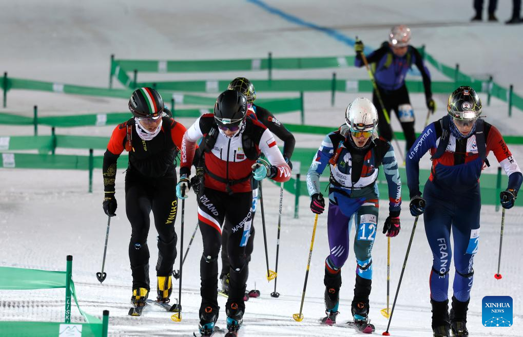 Athelets compete during the Women's Sprint Final of Ski Mountaineering at the 2025 FISU Winter World University Games in Sestriere, Italy, Jan. 16, 2025. (Xinhua/Ding Xu)