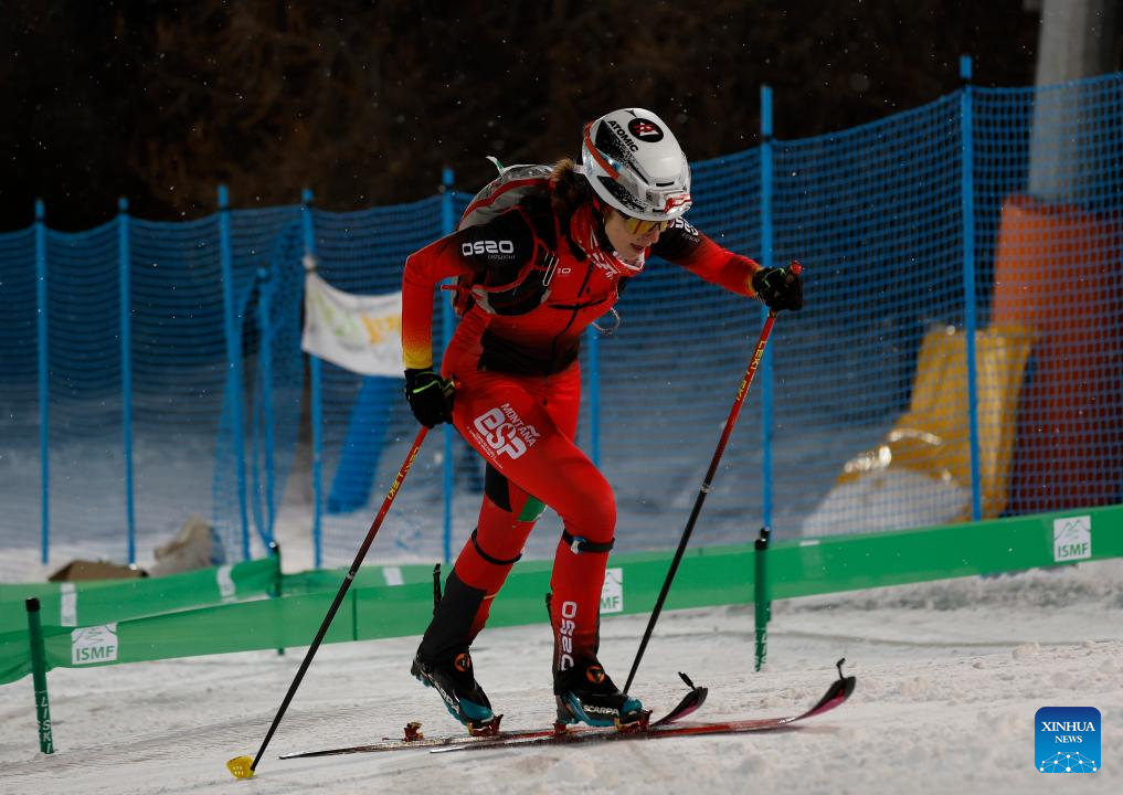 Maria Ordonez Cobacho of Spain competes during the Women's Sprint Final of Ski Mountaineering at the 2025 FISU Winter World University Games in Sestriere, Italy, Jan. 16, 2025. (Xinhua/Ding Xu)
