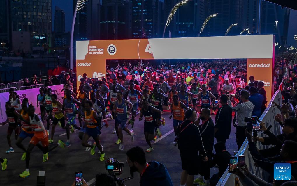 Participants start during the 2025 Doha Marathon in Doha, Qatar, Jan. 17, 2025. (Photo by Nikku/Xinhua)