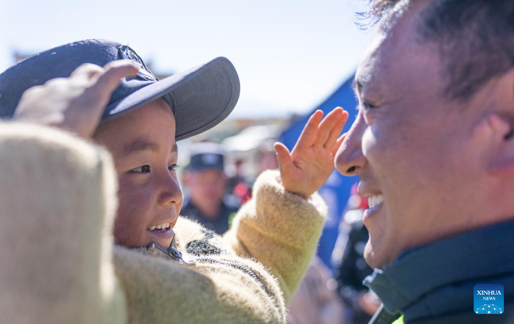 The disaster relief work in quake-hit Dingri County including makeshift houses construction, supply transportation and debris removal work have been accelerated to better meet the needs and improve the living conditions of the residents. (Xinhua/Tenzin Nyida)