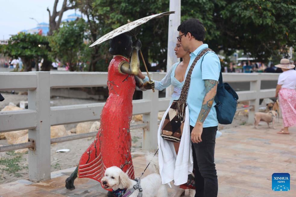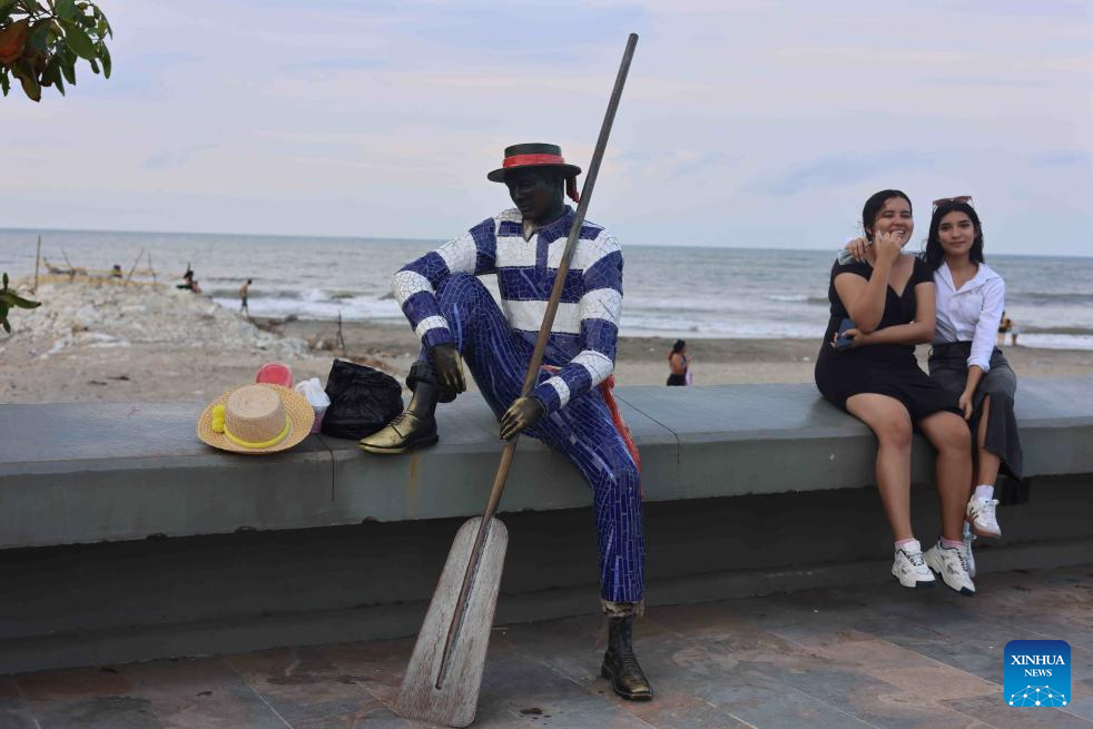This photo taken on Jan. 3, 2025 shows a square near the pier of Puerto Colombia, Colombia.