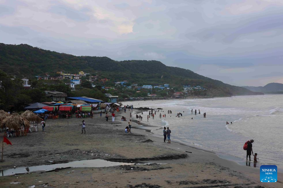 People enjoy their leisure time at the seaside in Puerto Colombia, Colombia, Jan. 3, 2025.