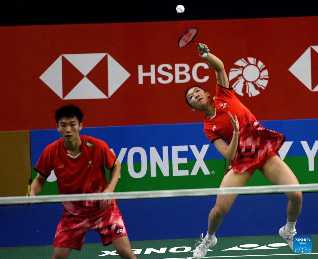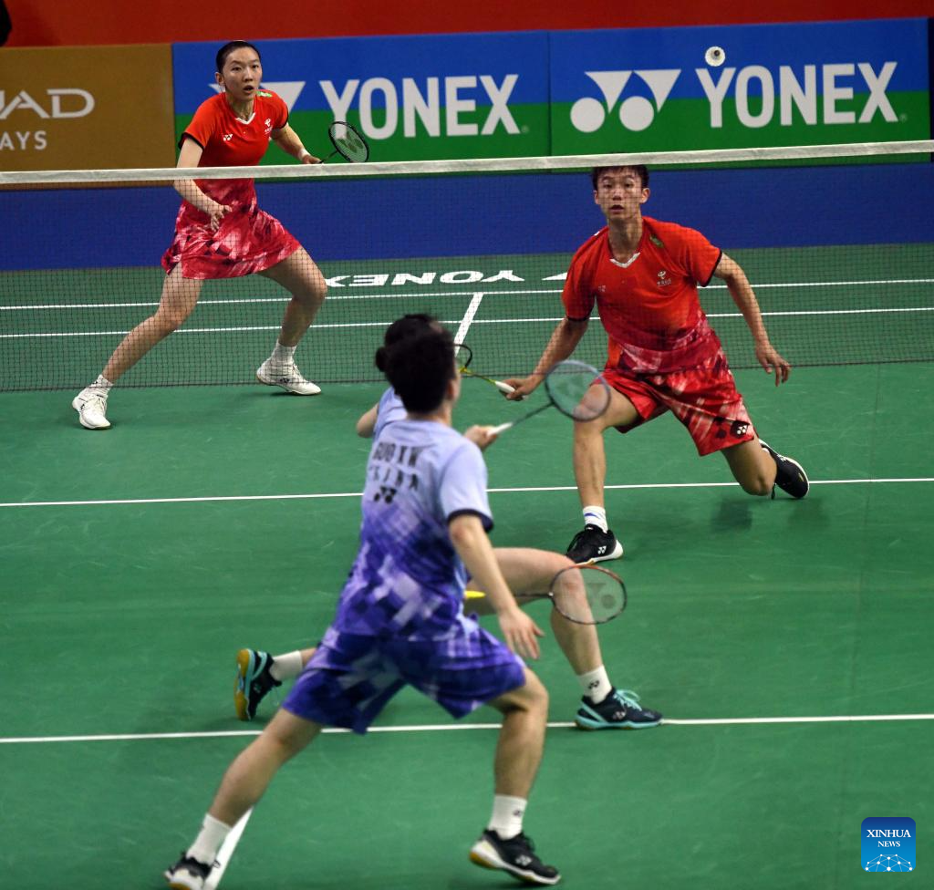 Jiang Zhenbang/Wei Yaxin (R) of China compete during the mixed doubles quarterfinal match against Guo Xinwa and Chen Fanghui of China at the India Open 2025 badminton tournament in New Delhi, India, on Jan. 17, 2025. (Str/Xinhua)