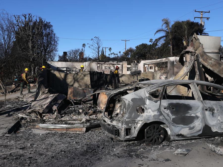 Another major active fire, the Eaton Fire, was 65 percent contained as of Friday morning, up from 55 percent a day earlier. The deadly fire has burned 14,117 acres (57.1 square km) near Altadena and Pasadena.