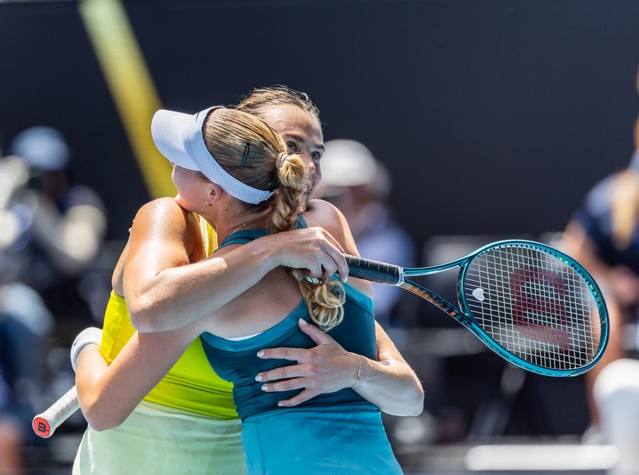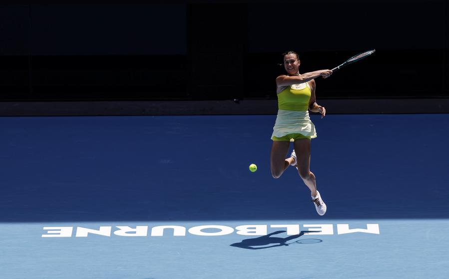 MELBOURNE, Jan. 19 (Xinhua) -- Top seed Aryna Sabalenka continued her march towards a third consecutive Australian Open title after disposing of Russian rising star Mirra Andreeva in the fourth round on Sunday.