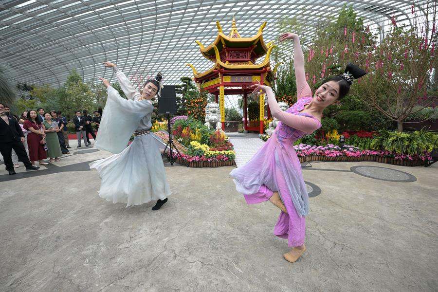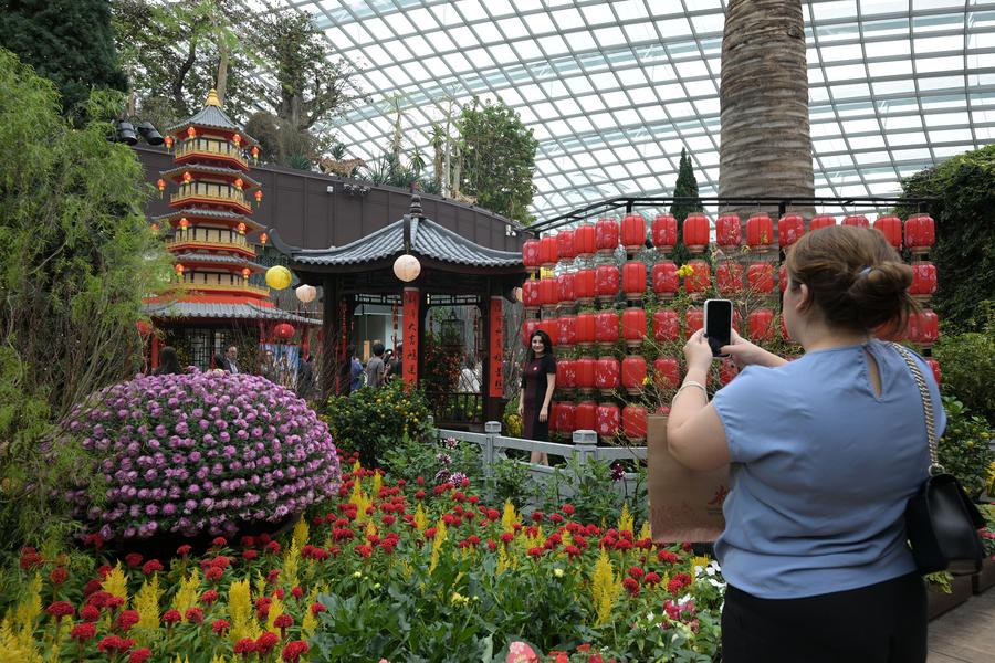 A visitor takes photos at the Chinese New Year floral display "Spring Blossoms" held in the Flower Dome of Singapore's Gardens by the Bay on Jan 17, 2025. (Xinhua/Then Chih Wey)People visit the Chinese New Year floral display "Spring Blossoms" held in the Flower Dome of Singapore's Gardens by the Bay on Jan 17, 2025. (Xinhua/Then Chih Wey)Dancers perform during the opening ceremony of the Chinese New Year floral display "Spring Blossoms" held in the Flower Dome of Singapore's Gardens by the Bay on Jan 17, 2025. (Xinhua/Then Chih Wey)People visit the Chinese New Year floral display "Spring Blossoms" held in the Flower Dome of Singapore's Gardens by the Bay on Jan 17, 2025. (Xinhua/Then Chih Wey)■
