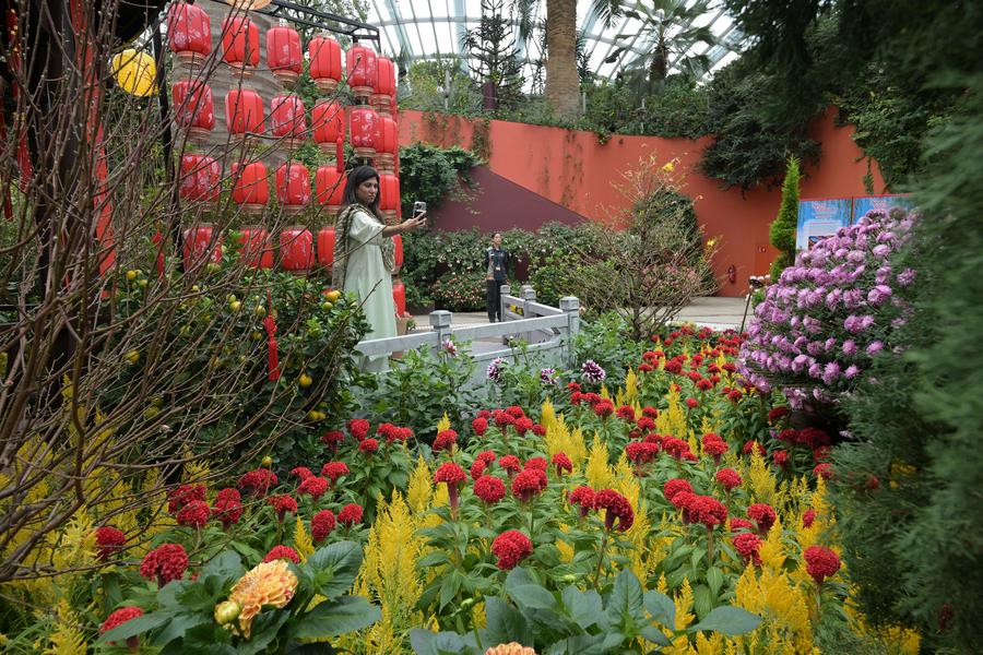 SINGAPORE, Jan. 20 (Xinhua) -- Singapore held a floral display "Spring Blossoms" to welcome the Chinese New Year, or Spring Festival, in the Flower Dome of Gardens by the Bay, inviting people to enjoy the festival that symbolizes renewal and family unity.