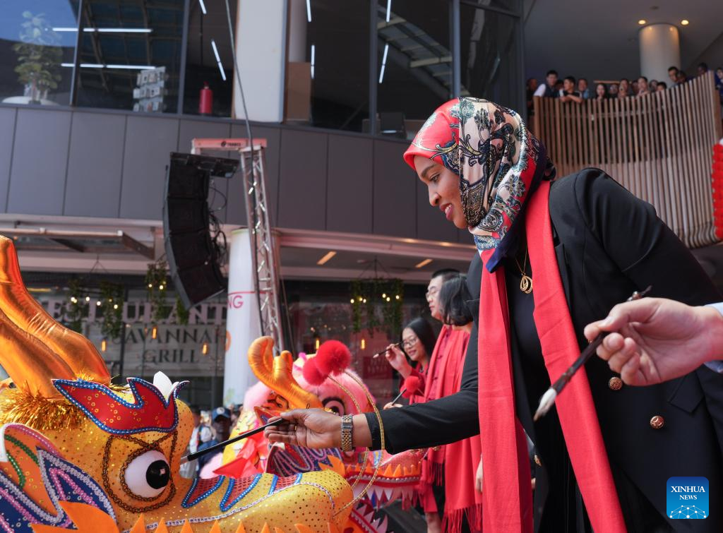 Ummi Bashir, principal Secretary of the State Department for Culture, the Arts and Heritage, attends an awakening ceremony, hoping to bring a dragon to life, at a Chinese New Year gala held in Nairobi, Kenya, Jan. 19, 2025. (Xinhua/Li Yahui)